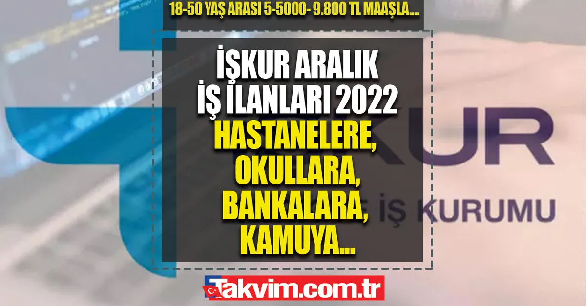 İŞKUR personel alımlarına yenilerini ekledi. Aralık ayında binlerce işçi, memur alımı olacak. Başvurular başladı! Temizlik personeli, güvenlik görevlisi, bekçi, zabıta; geçici ve daimi olmak üzere personeller alınacak. Bakanlıklarda, hastanelerde, bankalarda, okullarda, kamu kurum ve kuruluşlarında çalışmak isteyenler buraya! Başvuru şartlarına göre en az 18 yaşında olanlar başvuru yapabilecek. En düşük maaş İŞKUR'da 5.500 TL olarak ödenmekle birlikte mesleğe göre maaşlar 9.300 TL ve üzerine çıkabiliyor. İşte 2022 Aralık ayın GÜNCEL İŞ İLANLARI VE BAŞVURU ŞARTLARI- ŞEKLİ...