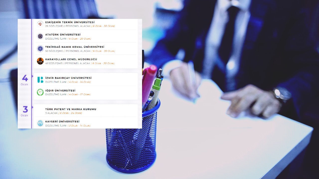 İçinde bulunduğumuz dönemde, belediyeler, üniversiteler ve diğer kamu kuruluşları pek çok personel alım ilanı yayımlamaktadır. Bunlar arasında üniversiteler ve karayolları gibi büyük kurumlardan gelen ilanlar dikkat çekiyor.