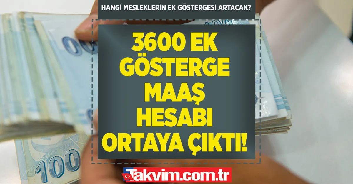 3600 ek gösterge için geri sayım sona eriyor. Gözler masadan çıkacak teklife çevrildi. Kamuda tespit edilen milyonlarca memurun aylığını, emeklililiğini ve ikramiye tutarını etkileyecek ek göstergede masaya gelen taslaklara ulaşıldı. Hemşire, polis, din görevlisi, öğretmen gibi mesleğe sahip olanlar amacıyla öngörülen 3600 ek gösterge 11 hizmet kolunu daha kapsayacak. Peki, kim hangi ek göstergeye kavuşacak? Ek gösterge kimleri ilgilendiriyor? Hangi unvan ve mesleğe kaç ek gösterge artışı yapılacak? İşte merak edilen soruların yanıtını Takvim Gazetesi Ekonomi Müdürü Faruk Erdem yanıtladı!