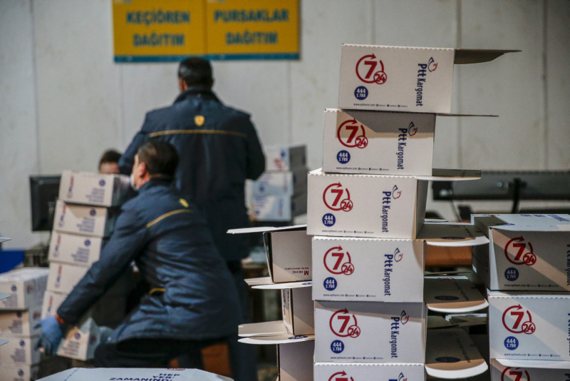 PTT'nin Ankara'daki tanzim satış deposunda ürünlerin siparişinden müşteriye ulaştırılmasına kadar olan süreç, Anadolu Ajansı tarafından görüntüledi.
