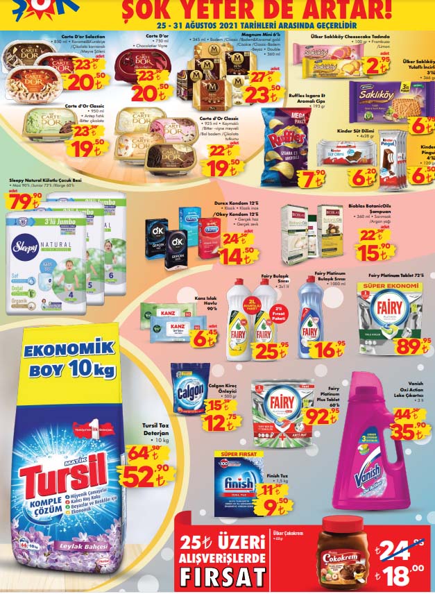 ŞOK 29-31 Ağustos aktüel ürünler kataloğu satışa çıktı. Bu haftaki aktüel ürünler kataloğunda vatandaşların aradığı tüm ihtiyaçlar mevcut. ŞOK'ta bu hafta Tursil 52,90'dan, Finish 9,50'den, Calgon'da 12,75'ten satılıyor. Her hafta kendi mağazalarına özel hazırlanan aktüel ürünler katalogları ile birbirinden kaliteli ve ucuz onlarca hatta yüzlerce üründe kampanyalar yapan ŞOK yine adından söz ettirecek bir kampanya ile karşımızda. İşte 29 -31 Ağustos ŞOK indirimli ürünler listesi...