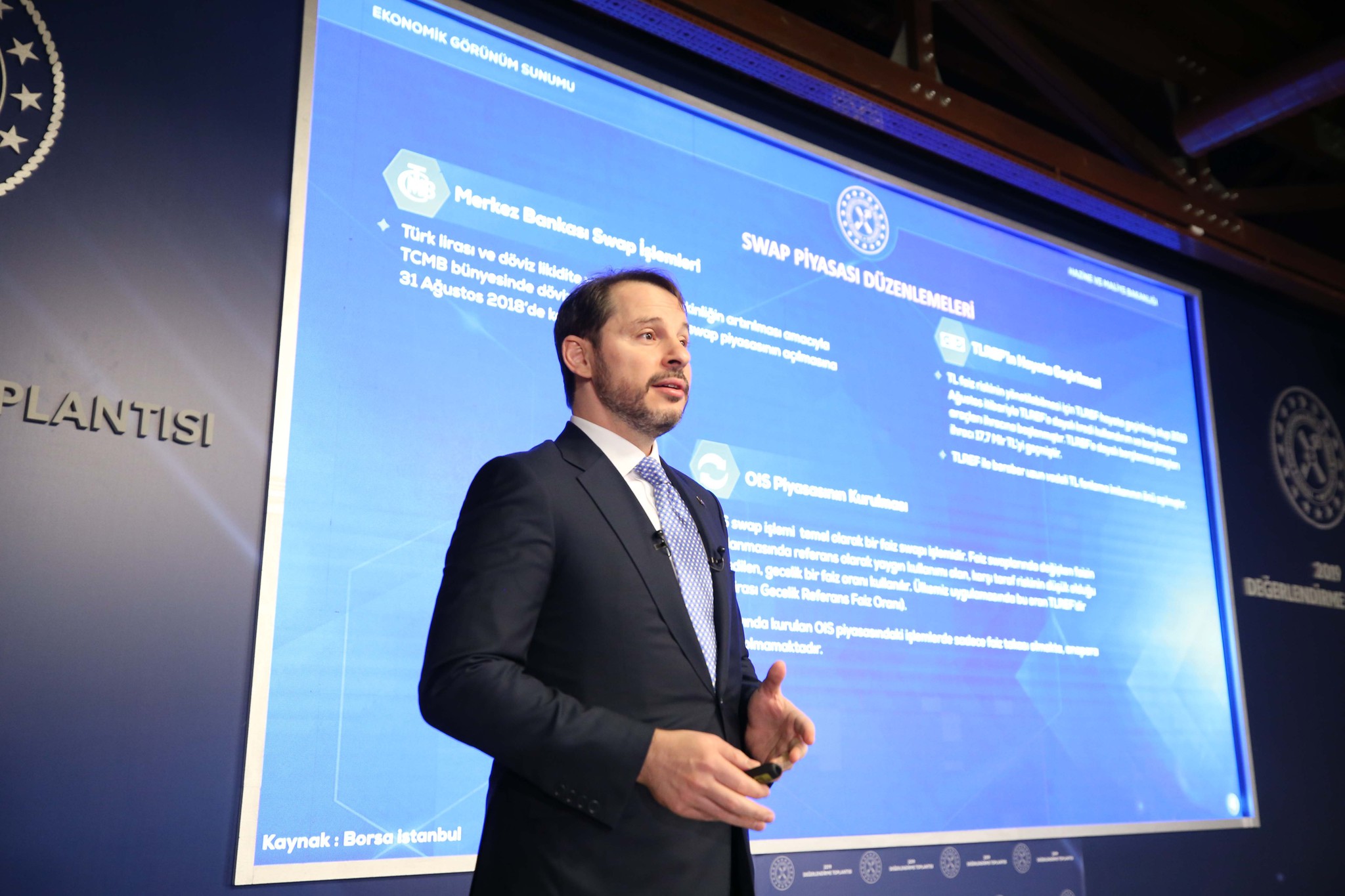 Albayrak, gelinen noktada, 2019 itibarıyla, özellikle son 6 ayda yaşanan iç ve dış politik dalgalanmalara rağmen stabilizasyonun yavaş yavaş oluşmaya başladığını aktararak, "Türkiye'de tüm bu gelişmeler ışığında ciddi iyileşmeler yaşanmaya başladığını gördük, gerek iç piyasada, gerek dış piyasada, gerek risk primlerinde, gerek Türkiye'nin referans faizi dediğimiz 2 yıllık tahvil faizlerinde ciddi iyileşmeleri bu süreçte görmeye başladık. Bu noktada bizim için çok önemli olan 5 yıllık CDS risk primi göstergesinde ve 2 yıllık devlet tahvil faizlerinde sadece son 1-2 yılın değil, bazı indikatörlerde son 3-5 yılın bile altında iyileşmeyi ciddi anlamda görmeye başladık." diye konuştu.
