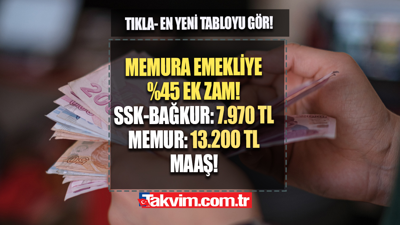 Milyonlarca emekli ve memurun maaş zammı netleşti ve ilk ödemeler yapılmaya başlandı. Memur emeklilerine ise hem yüzde 30 zam farkı hem de ek gösterge farkı yansıtılacak. Öte yandan memur ve emekli maaşlarına yeni bir zam yapılması gündeme geldi. Ek zam oranı için yüzde 15'lik bir artışın düşünüldüğü belirtilirken, böylelikle memur ve emekli zammının yüzde 45'e çıkarılacağı iddia edildi. Peki, emekli memur maaşlarına ek zam yapılacak mı? İşte kalem kalem maaş tablosu!