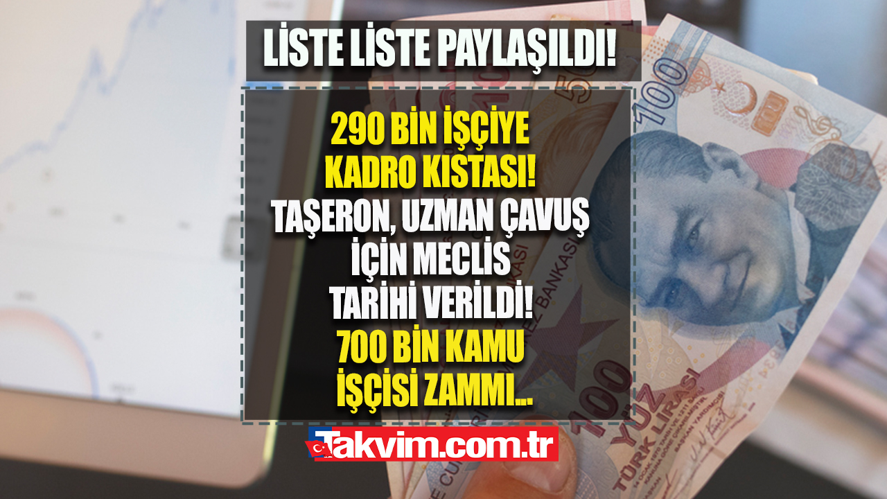 Geçici işçilere kadro meselesi geride kaldı. Şimdi gündemde taşeron, uzman çavuş, TYP'lilere kadro beklentisi yer alıyor. Bakan Bilgin son açıklamasında, "Taşeron işçiler meselesini çözeceğiz. KİT'lerde 900 bine yakın taşeron kadroya geçmiş vaziyette. Orada kalan 80 bin kişi var. Onları çalıştık, yeni taşeron işletmeler var." ifadelerine yer verdi. Peki, uzman çavuşa kadro verilecek mi? Taşeron işçiler ne zaman kadroya geçecek? İşte merak edilenler!