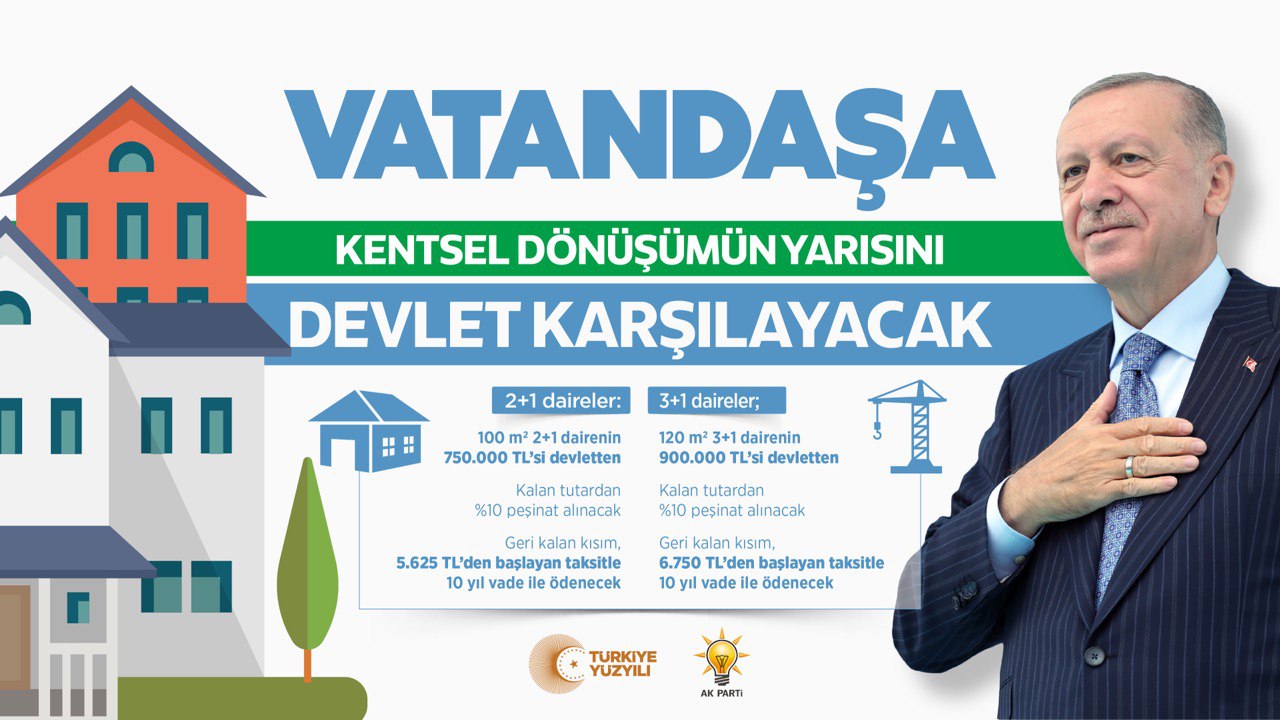 Vatandaşa kentsel dönüşümün yarısını devlet karşılayacak.