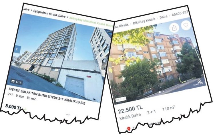 Fiyatların son bir senede yüzde 300 arttığı Beşiktaş ilçesinde yaptığımız araştırmada, 70 yıllık bir apartman dairesinde 2+1 evin kirasındaki haftalık artış dikkat çekti. Geçen hafta online emlak platformlarında yayımlanan ilanlarda kira bedeli 12 bin TL'ydi. Aradan bir hafta geçmeden evin kiralama fiyatı 22 bin TL'ye yükseltildi. Buna benzer durum bölgedeki başka bir apartmanda da yaşandı.