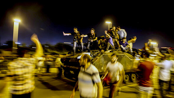 Fotoğrafta Ankara Maltepe'de tanklara müdahale eden polis ve vatandaşlar görülüyor.