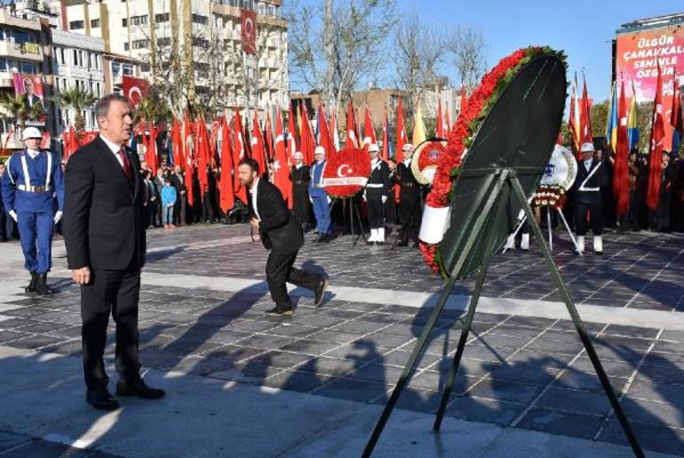 Cumhuriyet Meydanı'nda saat 09.00'da başlayan törene, Milli Savunma Bakanı Hulusi Akar, Çanakkale Valisi Orhan Tavlı, Çanakkale Boğaz ve Garnizon Komutanı Tuğamiral Levent Kerim Uça, Çanakkale Belediye Başkanı CHP'li Ülgür Gökhan, milletvekilleri, bürokratlar, askerler, muharip gaziler, sivil toplum kuruluşu temsilcileri ve öğrenciler katıldı.