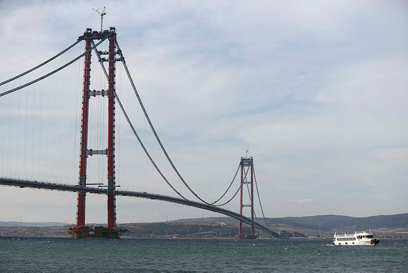 Dünyanın en büyük asma köprüsü unvanına da sahip olan köprünün ayakları 318 metrelik yüksekliğiyle 18 Mart Çanakkale Deniz Zaferi'ni simgeliyor. Cumhurbaşkanı Recep Tayyip Erdoğan tarafından 18 Mart 2017'de temeli atılan ve Çanakkale'nin Lapseki ilçesine bağlı Şekerkaya ile Gelibolu'nun Sütlüce mevkii arasında yapımı süren 1915 Çanakkale Köprüsü'nün ayakları 16 Mayıs Cumartesi günü Cumhurbaşkanı Recep Tayyip Erdoğan'ın video konferansla katıldığı törenle tamamlanmış ve 32 bloktan oluşan köprünün ayak yüksekliği 318 metreye ulaşmıştı.