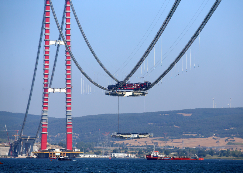 Her biri 45 metre genişliğinde, 48 metre uzunluğundaki mega tabliye blok montajlarının tamamlanmasıyla köprünün geçiş yolu kullanıma hazır hale gelmiş olacak.