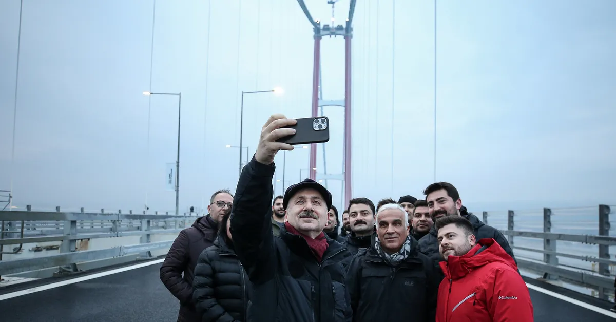 Ulaştırma ve Altyapı Bakanı Adil Karaismailoğlu, 18 Mart Şehitleri Anma Günü ve Çanakkale Deniz Zaferi'nin 107. yıl dönümünde yarın açılışı yapılacak 1915 Çanakkale Köprüsü'nde gün doğumunu karşıladı.