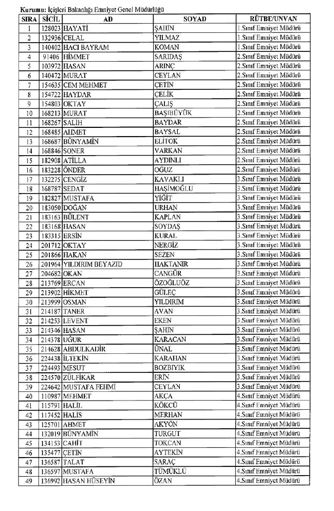 8 Temmuz KHK ile Emniyet'ten ihraç edilenlerin listesi... Son KHK ile Emniyet'ten ihraç edilenler... 701 sayılı KHK ile ihraç edilen komiserler...