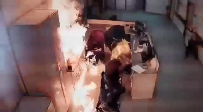 İddialara göre, hastasına pansuman yapmak üzere bankta hazırlık yapan hemşire şişeden alkol aktarımı yaptığı sırada bir anda alevler içerisinde kaldı.