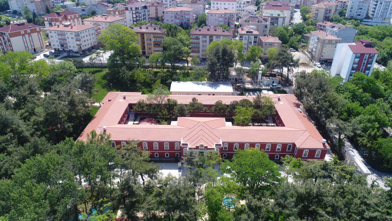 Toplamda 500 kişilik bir restorasyon ekibinin kısa sürede tamamladığı hastane havadan görüntülendi. Hastanenin 4 giriş kapısı bulunurken bahçesinde yer alan balık havuzları ve ağaçların üzerinde bulunan kuş yuvaları ayrı bir güzellik katıyor.