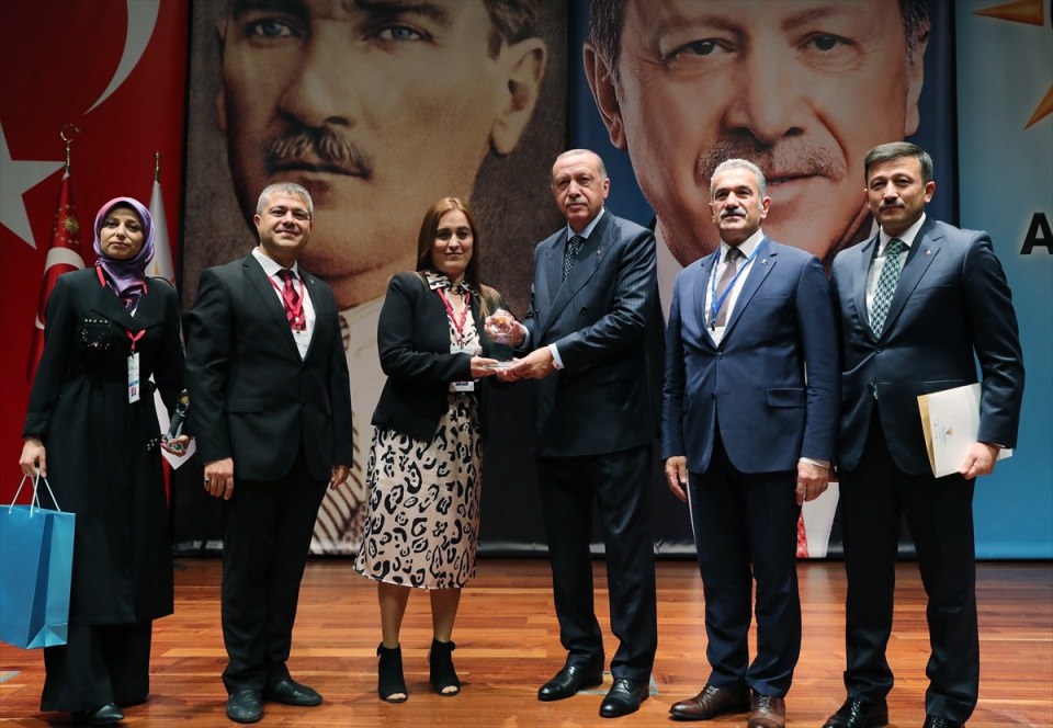 Erdoğan, konuşmasının ardından AK Parti Siyaset Akademisi'nde başarılı olan kursiyerlere plaket verdi. Ankara İl Teşkilatından Seda Altundağ, ödülünü almaya 40 günlük bebeği ile gedi. Erdoğan, bebeği sevdi.