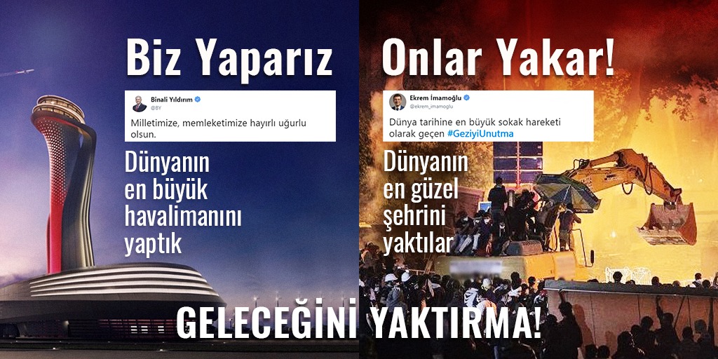 Cumhur İttifakı İstanbul Büyükşehir Belediye Başkan adayı Binali Yıldırım, Türkiye'nin dev projelerine imzasını attı. Yavuz Sultan Selim Köprüsü, Marmaray, İstanbul Havalimanı ve Avrasya Tüneli gibi İstanbul'u şaha kaldıran dev projeleri vatandaşın hizmetine sundu. AK Parti Türkiye'yi şaha kaldıran projelere imza atarken CHP zihniyeti ve Geziciler ise hep yıkan taraf oldu.