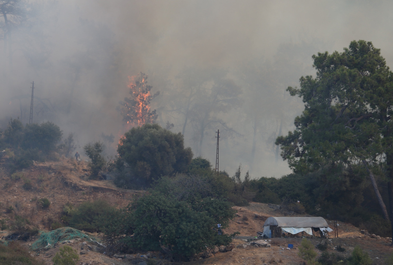 Yangının çıkış noktasına ulaşımın güç olması nedeniyle ekipler, sık kızılçam alanında yol açma çalışması yürütüyor.