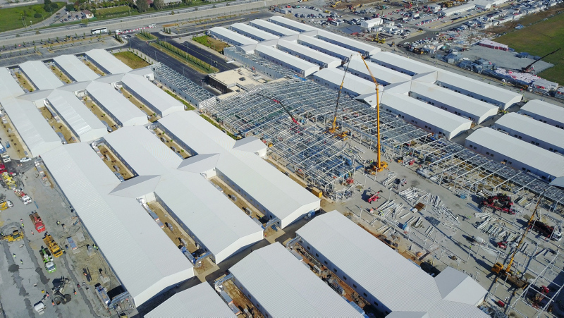 Koronavirüs ile mücadele kapsamında yapılan bin yataklı Atatürk Havalimanı'ndaki hastane inşaatında gelinen son durum havadan görüntülendi. 45 günde bitirilmesi planlanan inşaatta 7 gün 24 saat esasına göre iş makineleri ve hafriyat kamyonları ile aralıksız bir çalışma yürütülüyor.