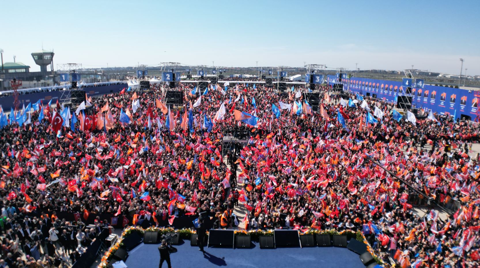 Katılımcılar, alana kurulan 40 ayrı LED ekrandan mitingi izlerken, engelliler için de özel bölüm oluşturuldu.