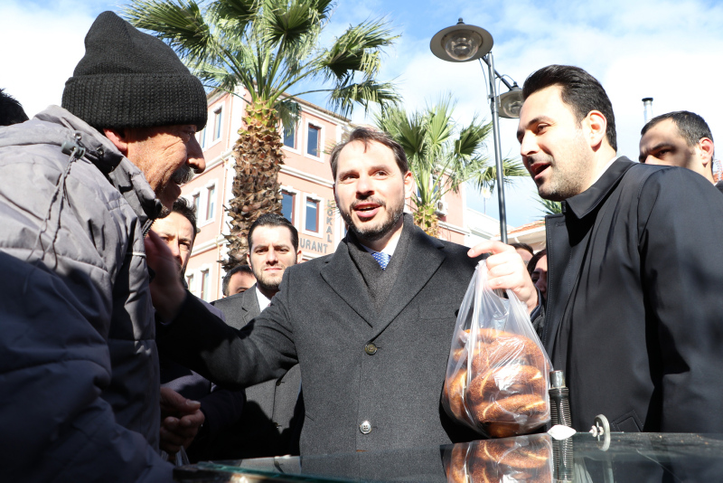İş yerlerine girerek esnafla sohbet eden Albayrak, seyyar satıcıdan simit alıp kendisini takip eden basın mensuplarıyla paylaştı. Albayrak, simit eşliğinde, kendisine ikram edilen çayı içti.