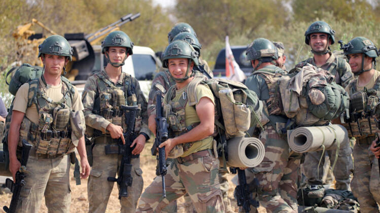 Münbiç çevresinde konuşlanan Türk özel kuvvetler askerlerinin objektife gülerek poz verdiği ve moralinin yerinde olduğu dikkat çekiyor.