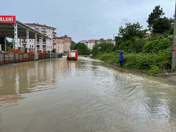 Trafik ekiplerinin önlem aldığı bölgede, bazı evlerin zemin ve giriş katlarını da su bastı.