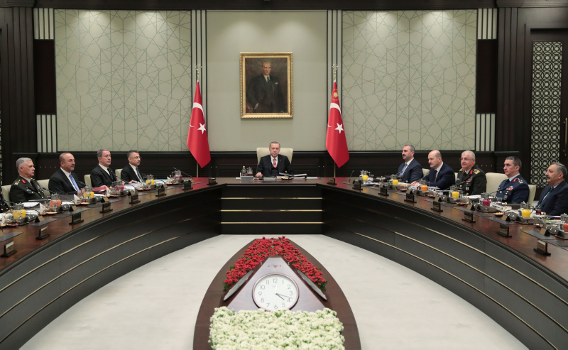"Ülkemizin güvenliğini ilgilendiren önemli iç ve dış gelişmeler bütün yönleriyle ele alınmış; FETÖ/PDY, PKK/PYD-YPG ve DEAŞ başta olmak üzere, millî birlik ve beraberliğimizi tehdit eden tüm terör örgütlerine karşı yurt içinde ve yurt dışında icra edilen operasyonlar ile hudut güvenliği hakkında kurula bilgi arz edilmiştir.