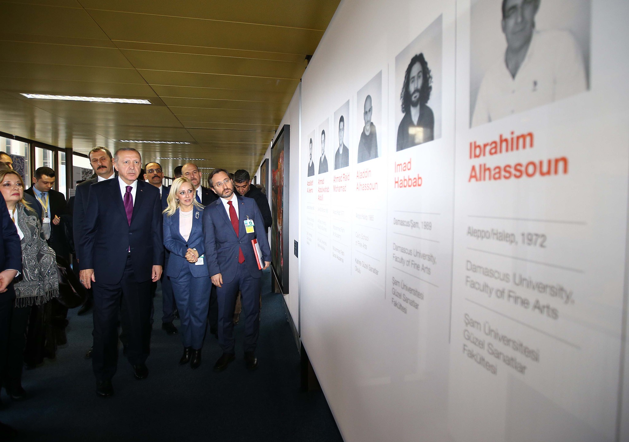 Başkan Erdoğan, 1. Küresel Mülteci Forumu'na katılmak üzere bulunduğu Cenevre'deki BM Ofisi'nde "Hayat Devam Ediyor, Sanat Devam Ediyor" sergisini gezdi.