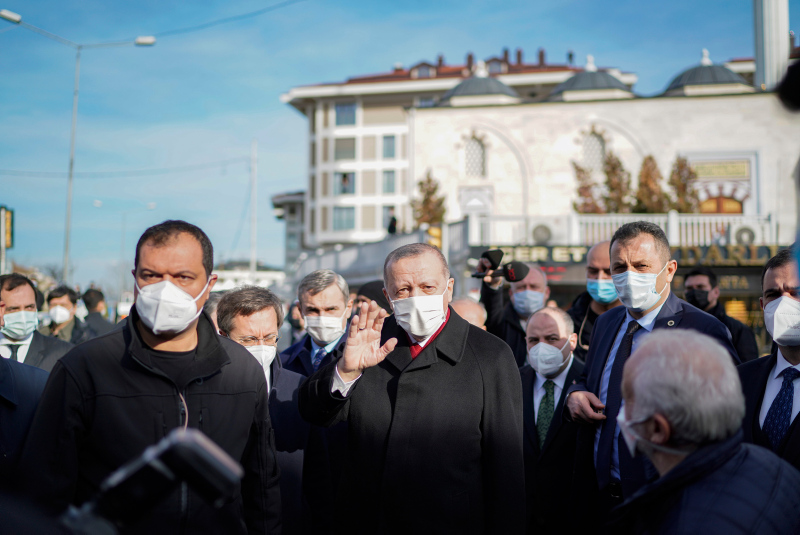 Burada cuma namazını kılan Erdoğan'a Sanayi ve Teknoloji Bakanı Mustafa Varank, Cumhurbaşkanlığı İletişim Başkanı Fahrettin Altun, İstanbul Valisi Ali Yerlikaya, AK Parti İstanbul İl Başkanı Bayram Şenocak eşlik etti.
