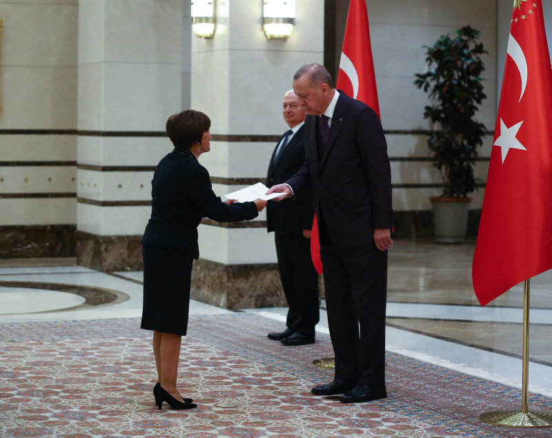 Cumhurbaşkanlığı Külliyesi'ndeki kabulde Büyükelçi Puma Puma, Erdoğan'a güven mektubu sundu.
