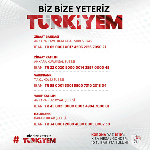 Başkan Erdoğan, Kabine toplantısı sonrasında ulusa seslendi. Koronavirüsle mücadele kapsamında Milli Dayanışma Kampanyası'nı başlatan Erdoğan, ''Biz bize yeteriz Türkiyem" ifadelerini kullandı. Cumhurbaşkanı Erdoğan'ın 7 aylık maaşını bağışlayarak başlattığı kampanyaya, devletin üst kademesinden birçok isim de destek verdi.