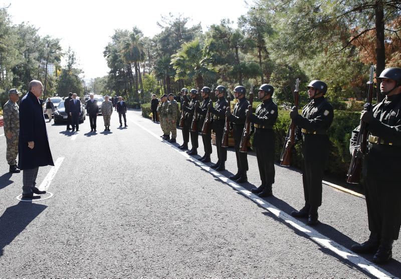 Başkan Recep Tayyip Erdoğan Şanlıurfa'daki Kara Kuvvetleri Komutanlığı Müşterek Harekat Merkezi'ni ziyaret etti. Başkan Erdoğan'a ziyareti sırasında Milli Savunma Bakanı Hulusi Akar, İçişleri Bakanı Süleyman Soylu ve MİT Başkanı Hakan Fidan eşlik etti. Erdoğan Barış Pınarı Harekatı ile ilgili bilgi aldı.