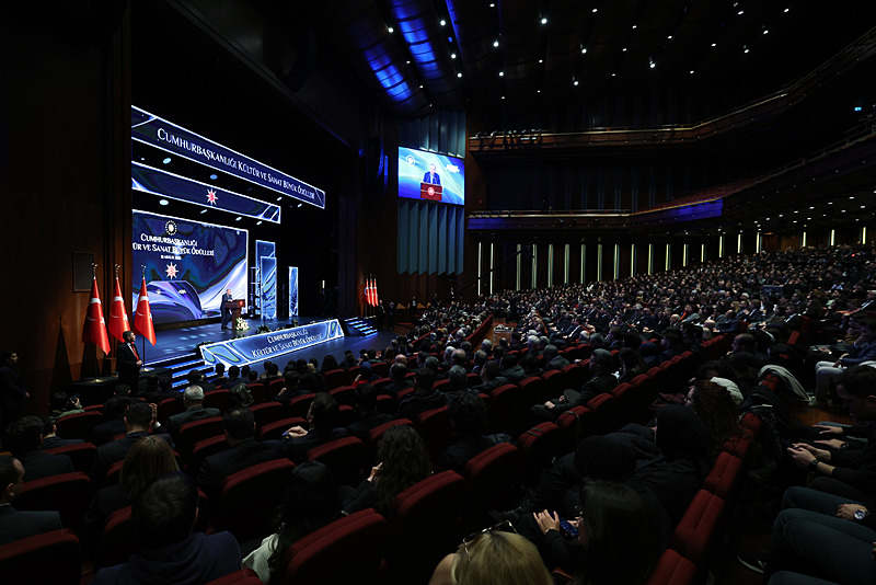 Başkan Recep Tayyip Erdoğan, Beştepe Millet Kongre ve Kültür Merkezi'nde Cumhurbaşkanlığı Kültür ve Sanat Büyük Ödülleri programına katılarak konuşma yaptı.