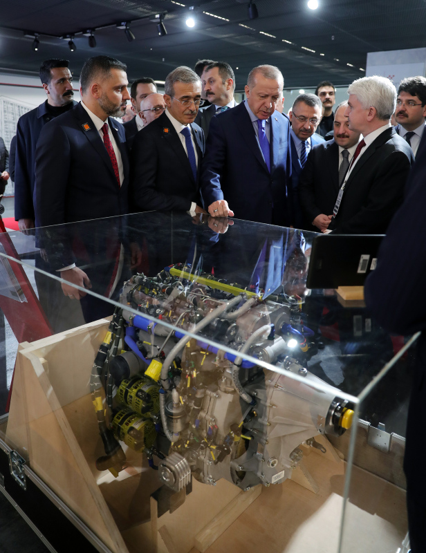 Başkan Erdoğan, tören öncesinde Oktay ve bakanlarla Teknopark İstanbul'da geliştirilen ürünlerin sergilendiği alanı gezerek, milli teknolojiler hakkında bilgi aldı.