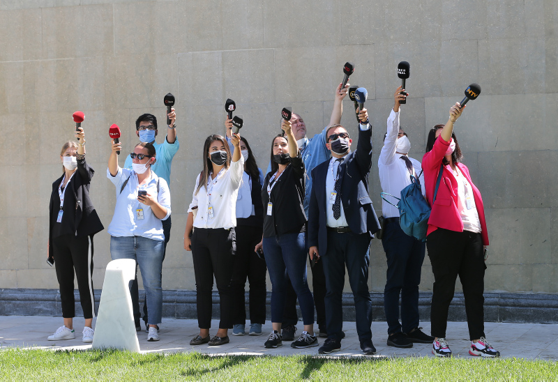Başkan Erdoğan, cuma namazını Büyük Çamlıca Camisi'nde kıldı. Basın mensupları, camideki cemaate seslenen Erdoğan'ın konuşmasını mikrofonlarını havaya kaldırarak kaydetmeye çalıştı.