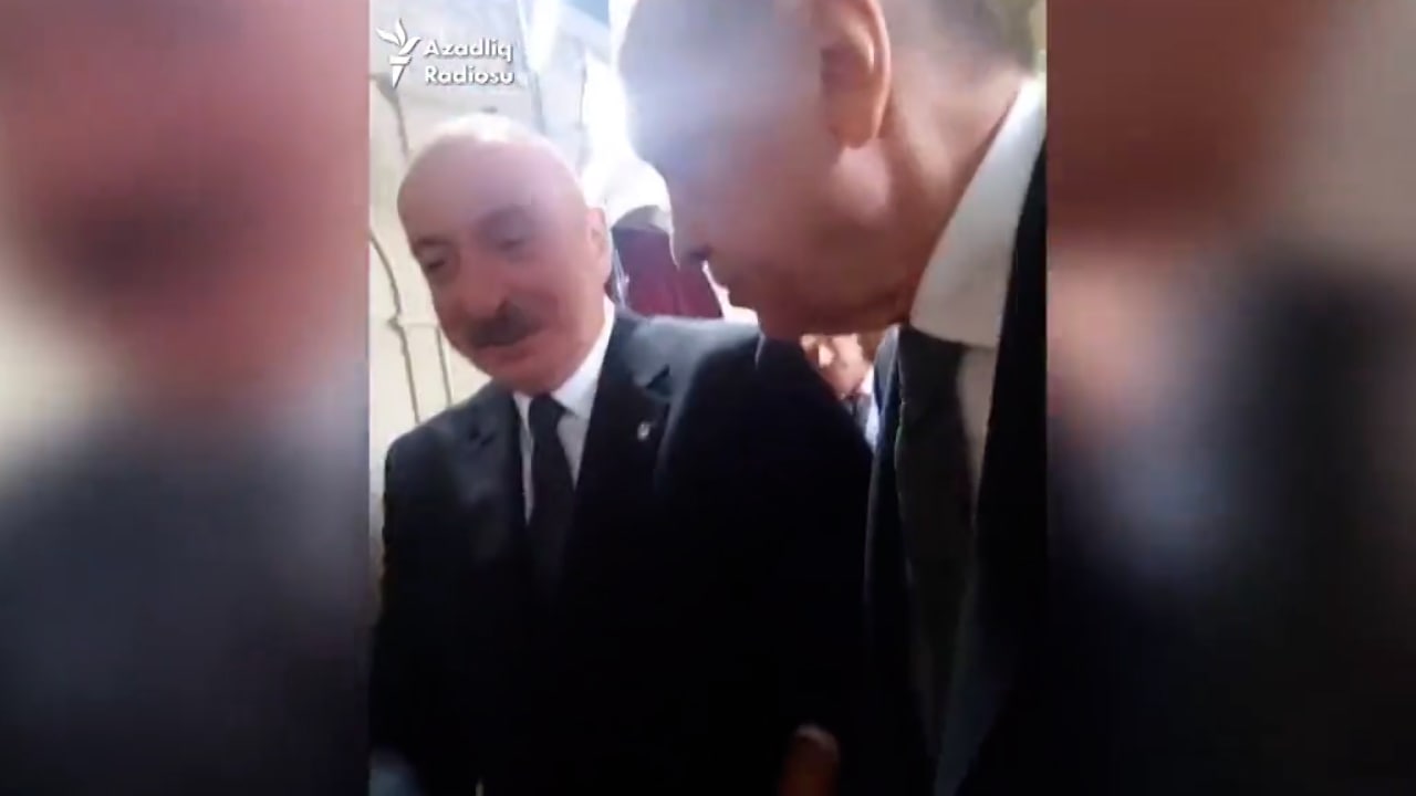 Azerbaycan'da yayın yapan Azadlıq Radiosu muhabiri, kol kola yürüyen Başkan Recep Tayyip Erdoğan ve Azerbaycan Cumhurbaşkanı İlham Aliyev'e soru sormak istedi.
