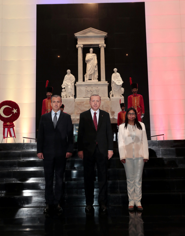 Venezuela'ya resmi ziyaret gerçekleştiren Erdoğan, başkent Caracas'taki temaslarına başladı.Bu doğrultuda ilk olarak Simon Bolivar Anıt Mezarı'nı ziyaret eden Erdoğan, burada Venezuela Devlet Başkan Yardımcısı Delcy Rodriguez tarafından karşılandı. Cumhurbaşkanı Erdoğan, anıt önünde ellerindeki Türk ve Venezuela bayraklarıyla kendisini bekleyen çocukları selamlayarak hatıra fotoğrafı çektirdi.