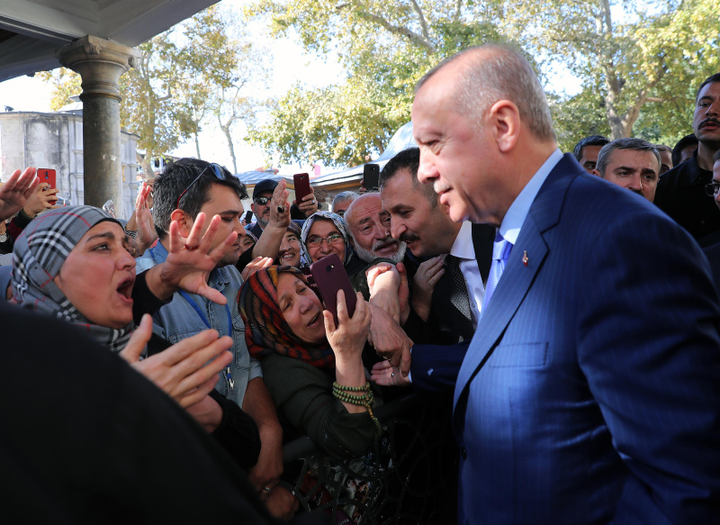 CUma namazını Eyüp Sultan'da kılan Erdoğan'a vatandaşlar yoğun ilgi gösterdi.