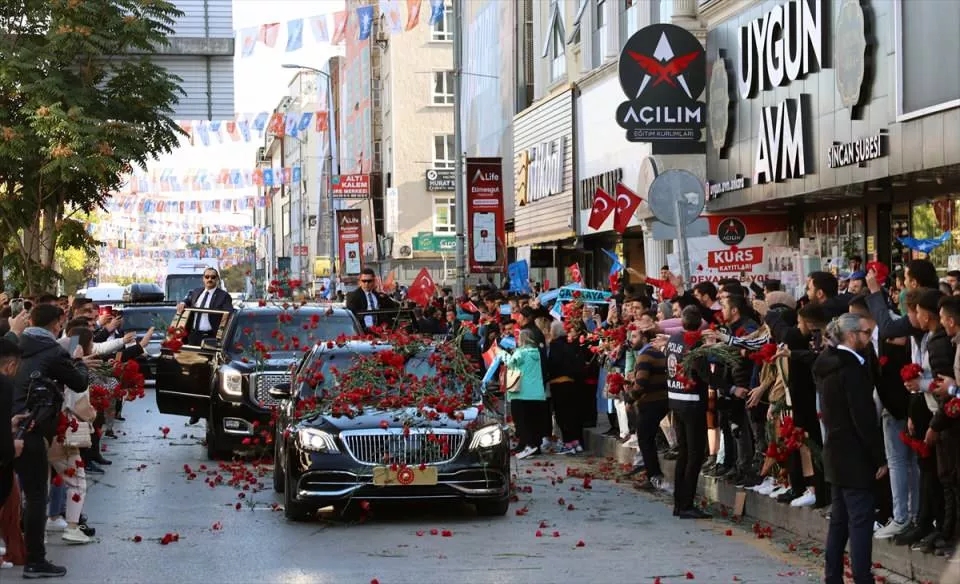 Başkan Erdoğan'a yol güzergahı boyunca sevgi gösterisinde bulunan vatandaşlar, Erdoğan'ın makam aracını attıkları karanfillerle kapladılar.