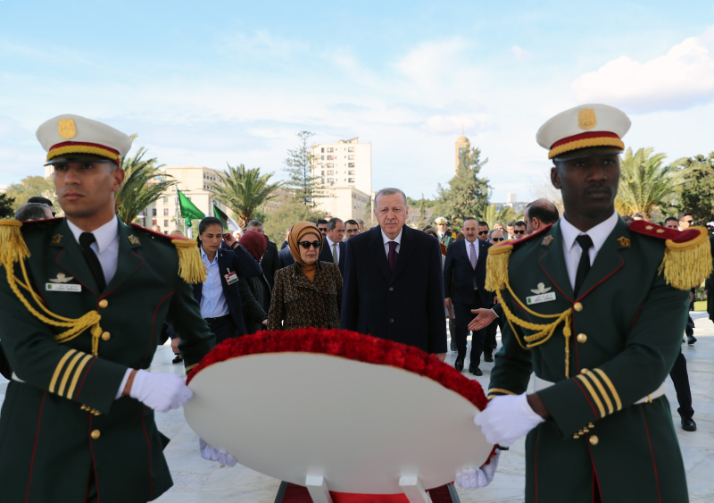 Başkan Recep Tayyip Erdoğan, resmi karşılama töreninin ardından Cezayir Cumhurbaşkanı Abdulmecid Tebbun ile Şehitler Abidesi'ne geçti.