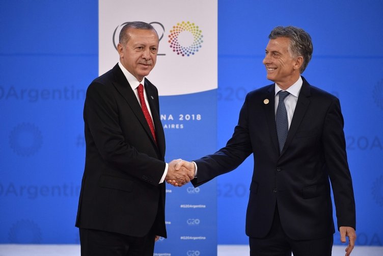 Başkan Recep Tayyip Erdoğan, dünya liderlerinin bir araya geldiği G-20 Zirvesi'nin yapılacağı alanda Arjantin Devlet Başkanı Mauricio Macri tarafından karşılandı.