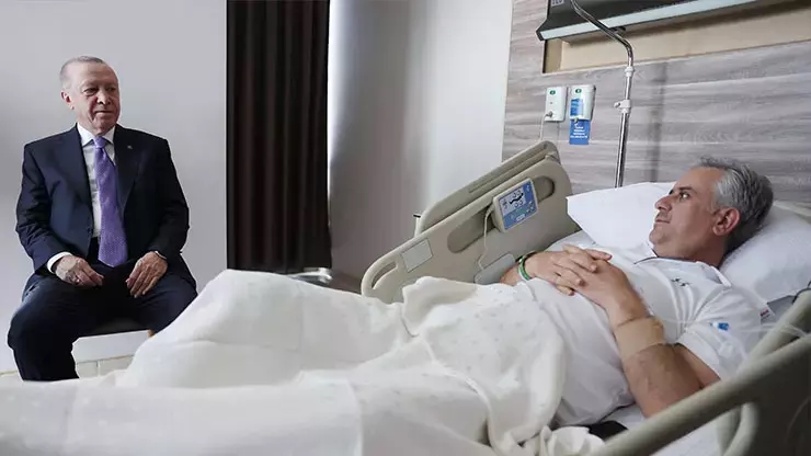Yalçın'ı hastane odasında ziyaret ederek "geçmiş olsun" temennisinde bulunan Erdoğan, doktorlardan sağlık durumuna ilişkin bilgi aldı.