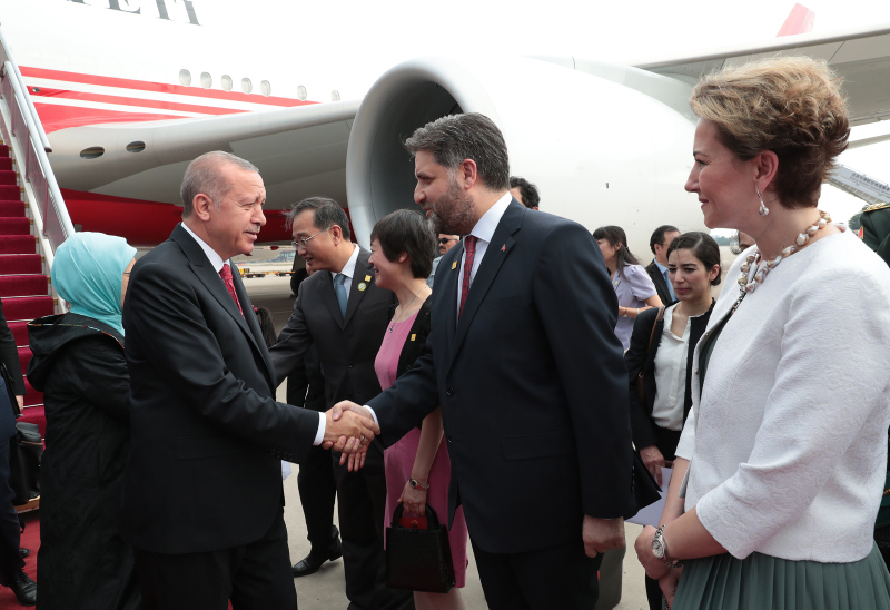 Japonya'daki temaslarının ardından başkent Tokyo'dan Çin'in başkenti Pekin'e gelen Başkan Recep Tayyip Erdoğan, havalimanında karşılandı.