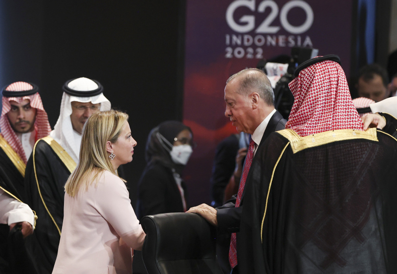 Başkan Recep Tayyip Erdoğan, Endonezya'nın Bali Adası'nda düzenlenen G20 Liderler Zirvesi resmi karşılama törenine katıldı. Başkan Erdoğan, oturumun yapılacağı salonda liderlerle ayaküstü sohbet etti.