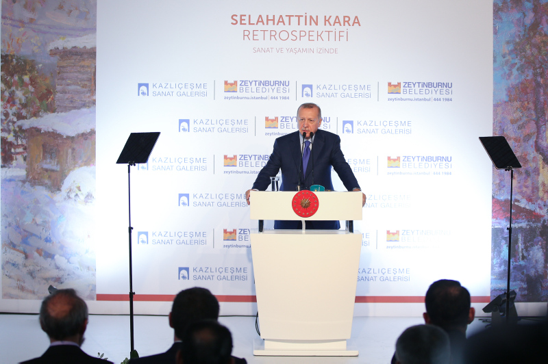 Başkan Recep Tayyip Erdoğan Kazlıçeşme'deki Zeytinburnu eski belediye binasında Selahattin Kara Resim Sergisi'nin açılışına katıldı. Açılışta kısa bir konuşma yapan Başkan Erdoğan, "Tüm ilçeleriyle İstanbul'umuzun sanatın her dalında ortaya koydukları eserleriyle taçlandıran sanatçılarımızın her biri başımızın tacıdır." ifadelerini kullandı.