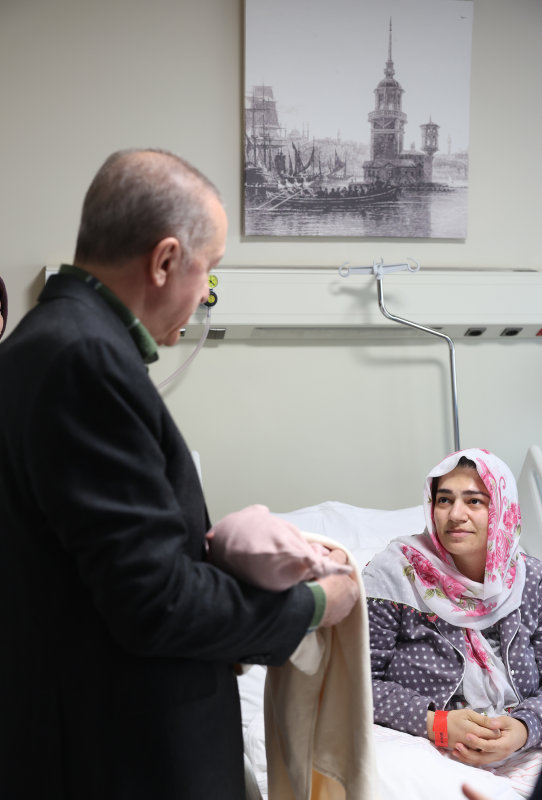Başkan Recep Tayyip Erdoğan yaralı depremzedeler ve ailelerini ziyaret etmek üzere saat 17.30 sıralarında Başakşehir Çam ve Sakura Şehir Hastanesi'ne geldi.
