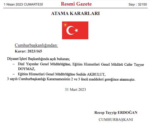 Başkan Recep Tayyip Erdoğan imzalı Resmi Gazete'nin bugünkü sayısı ilan edildi. Bazı kurum ve kuruluşlarına atama kararları Resmi Gazete'de yayımlandı. İşte isim isim atama kararları...
