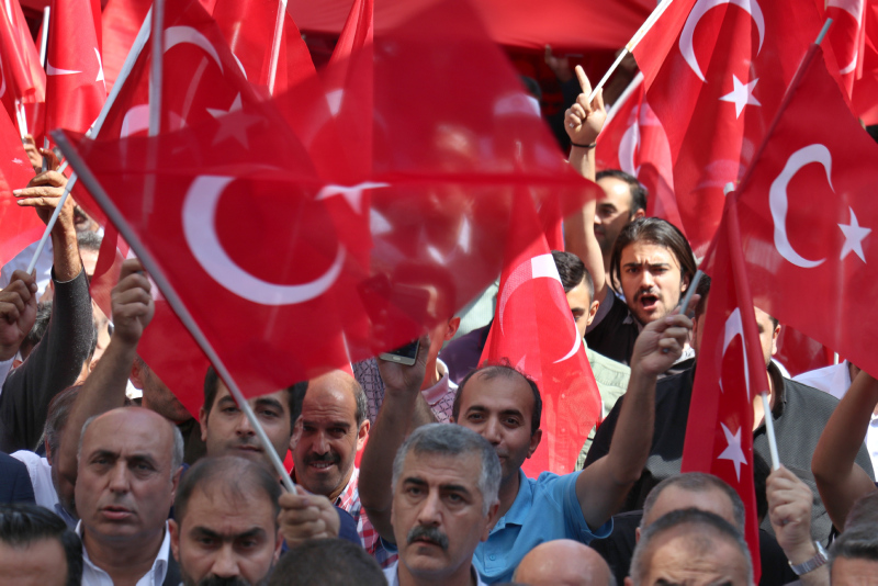 Şehir Stadyumu'nda toplanan kalabalık, Türkiye Muharip Gaziler Derneği ile Türkiye Harp Malulü Gaziler, Şehit, Dul ve Yetimler Derneği Hakkari temsilcileri tarafından yapılan konuşmaların ardından, ellerinde Türk bayrakları ile yürüyüşe geçti. Kalabalık, yürüyüş boyunca 'Şehitler ölmez, vatan bölünmez', 'Türk- Kürt kardeştir, ayrım yapan kalleştir', 'PKK şaşırma, sabrımızı taşırma' sloganları attı.