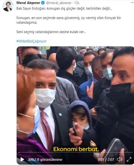 Meral Akşener, sosyal paylaşım sitesi Twitter'daki resmi hesabından Yüksel Temur'un kendisiyle yaptığı konuşmanın videosunu paylaştı. Akşener, "Bak Sayın Erdoğan, konuşan dış güçler değil, teröristler değil...