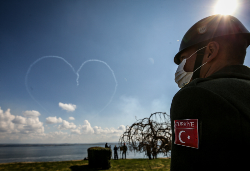 "Tüm dünyaya karşı azmin, cesaretin ve fedakarlığın örneklerinin sergilendiği Çanakkale Savaşları, vatanın bütünlüğü ve bağımsızlığı söz konusu olduğunda Türk milletinin vatanı için hangi zorluklara göğüs gerebileceğinin en güzel örneklerinden biridir. Çanakkale Zaferi, biricik evlatlarını şefkat ve muhabbetle bağrına basıp 'Oğul seni yetiştirdim hizmet eyle vatana, ak sütümü helal etmem saldırmazsan düşmana' diyerek cepheye uğurlayan cefakar anaların ve analarının elini öperek 'Hakkını helal et şefkatli ana, canım feda olsun kutsal vatana' sözleriyle karşılık veren yiğit ve kahraman Mehmetçik'in, tarih sahnesine çıkan ebedi Başkomutan Mustafa Kemal Atatürk ile yazdığı destandır."